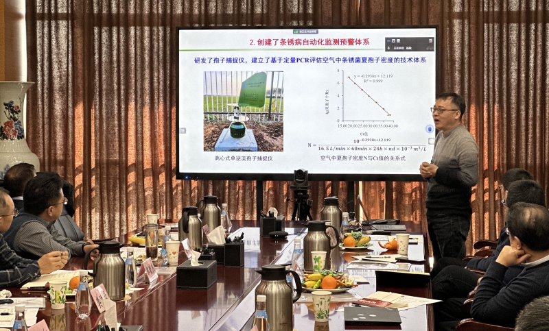 项目首席科学家、西北农林科技大学王晓杰教授总结汇报2023年项目组的研究进展与取得成效。郭所长介绍了植保所长期以来在小麦条锈病研究与综合治理方面的研究成果与进展。各子课题成员分别汇报项目实施进展和取得成效。中国工程院院士康振生教授、中国植保学会名誉理事长陈万权研究员、全国农技中心刘万才处长、中国农业大学马占鸿教授在线上对项目实施和进展进行点评。甘肃省农业农村厅、甘肃农业大学和甘肃省农业科学院等相关专家在现场对项目进行点评,与会专家充分肯定了项目组的辛苦付出与取得成绩,同时对项目下一阶段的实施提出宝贵意见和建议。