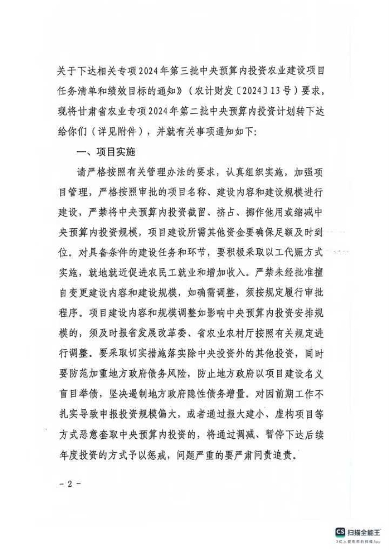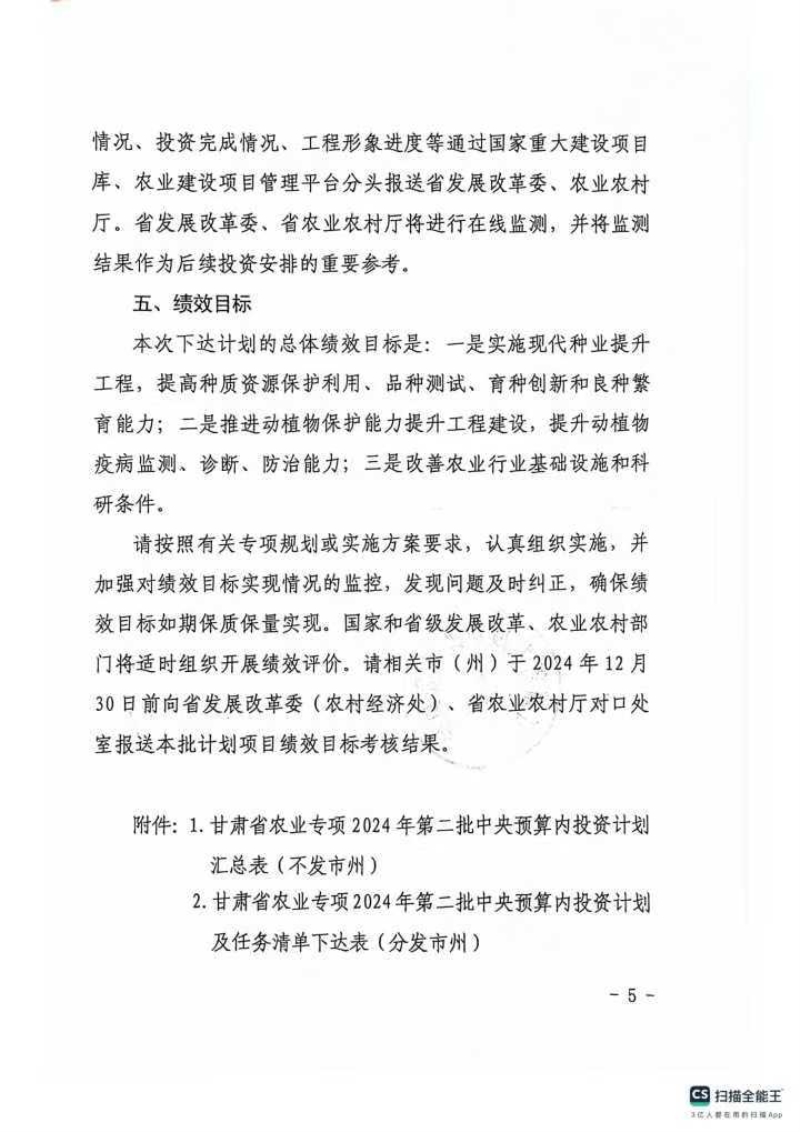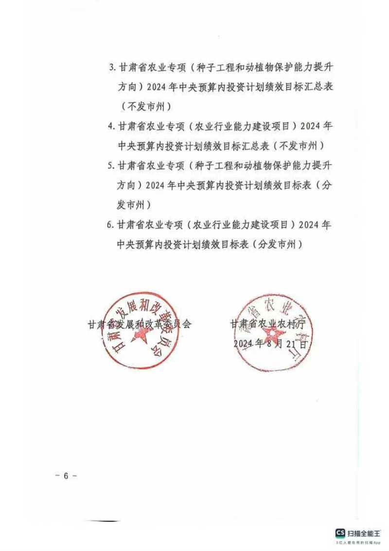 近日,接甘肃省发展和改革委员会、甘肃省农业农村厅《关于转下达甘肃省农业专项2024年第二批中央预算内投资计划的通知》(甘发改投资〔2024〕554号),我院申报的4个项目获批总投资8775万元,其中中央预算内投资7638万元,本年度下达我院投资资金5888万元。