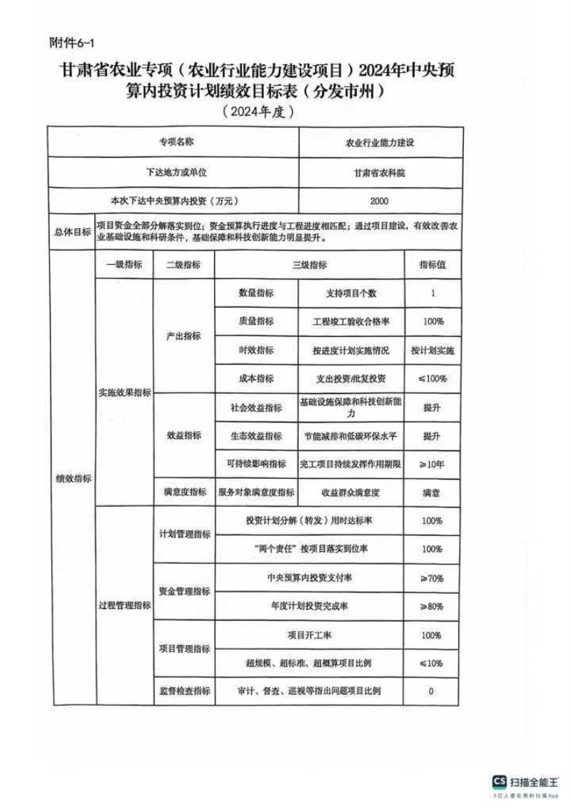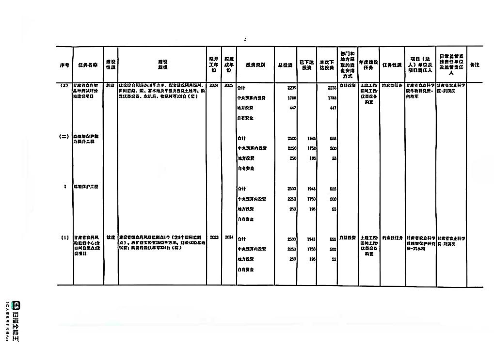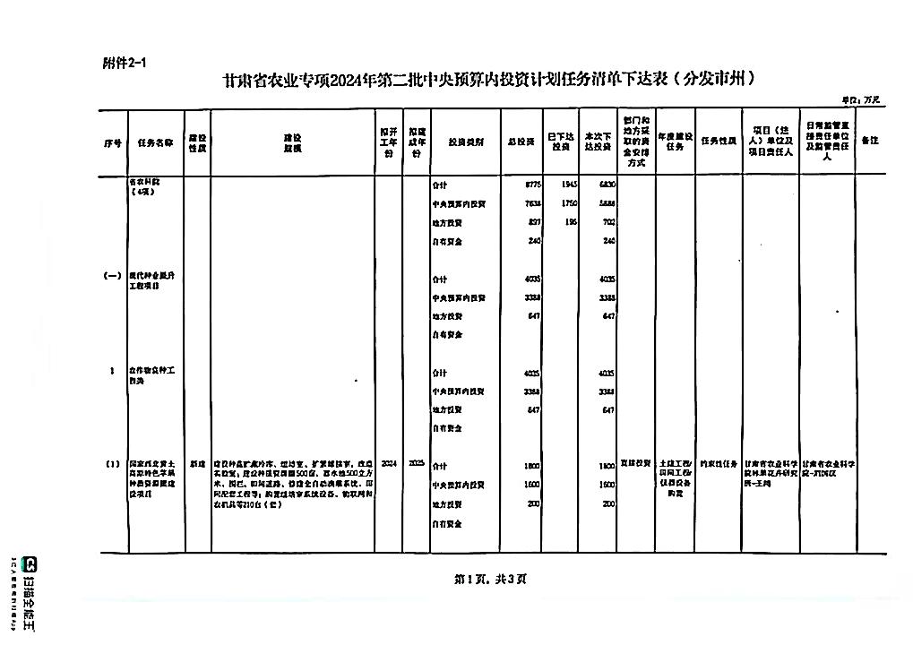 2、作物研究所承担的现代种业提升工程项目:《甘肃省作物品种测试评价站建设》(农作物良种工程类)获批总投资2235万元,其中,中央预算内投资1788万元。