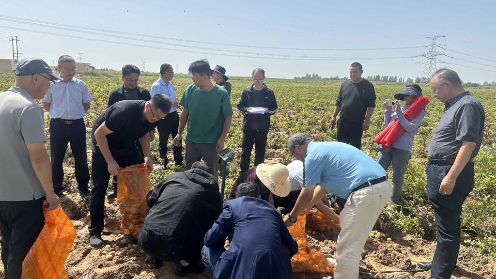 近日,我院重点研发《河西走廊沿沙地带马铃薯生产关键技术集成研究示范》项目在古浪县进行现场验收和测产活动。院党委委员、副院长吕和平、杨天育,科研管理处处长胡新元出席。甘肃省种子管理总站站长吕小瑞研究员、甘肃省农业技术推广总站站长李世成研究员、甘肃农业大学张峰教授组成专家组莅临指导。项目主持单位马铃薯研究所、参与单位旱地农业研究所和古浪县成达农产品贸易有限公司等有关人员参加。