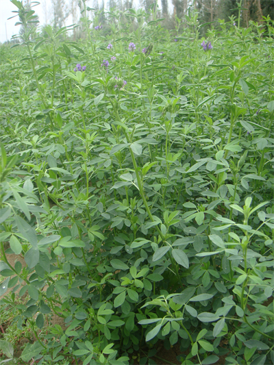 产草量比较高:区域试验比当地主栽品种甘农3号(以干草计算)平均增产11.06%,生产试验比当地主栽品种甘农3号平均增产10.31%,干草产量可达1.05吨/亩。