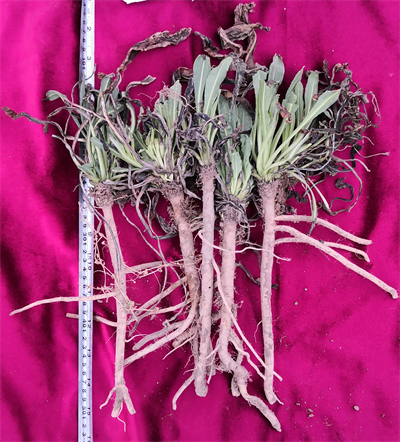 品系来源:2013年至2018年从民乐县六坝镇农户大田种植的板蓝根混合群体中,采用单株选育法选育出的板蓝根新品系。