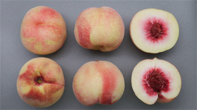 果实发育期155天,极晚熟品种,平均单果重233克,最大单果重290克;可溶性固形物含量14.2%,果肉白色,硬溶质,粘核,风味甜;果实近圆形,果顶平,果形端正,果实着红色晕。该品种在兰州安宁区9月下旬成熟。适宜在甘肃省兰州市、天水市、陇南市等桃产区种植。