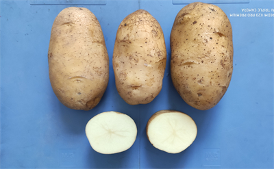 鲜食菜用型品种,原代号L12141-6。中早熟,生育期89天左右,花白色。薯块椭圆形,薯皮光滑,白皮白肉,芽眼浅,大中薯率80%以上。薯块含干物质18.1%,粗淀粉12.40%,粗蛋白2.22g/100g,维生素C 17.5mg/100g,还原糖0.12%,钾436.62mg/100g。全省区域试验最高亩产3732.00公斤,平均亩产2689.37公斤,比统一对照LK99增产8.23%。田间表现抗晚疫病,耐花叶病毒病,抗卷叶病毒病。适宜在甘肃省陇南、天水、兰州、平凉等喜白皮白肉类型的地区川水地栽培。还可在其他喜白皮白肉类型区域种植。