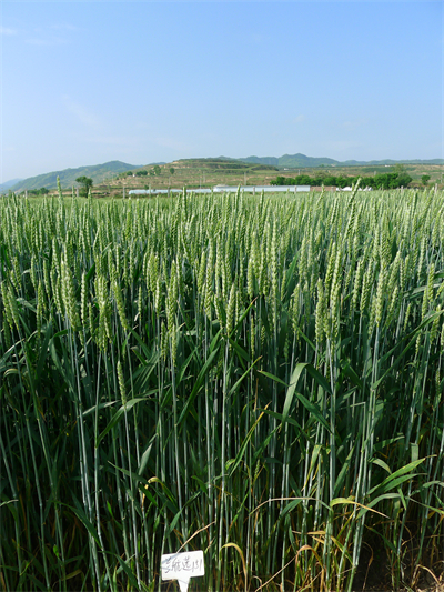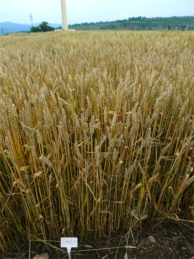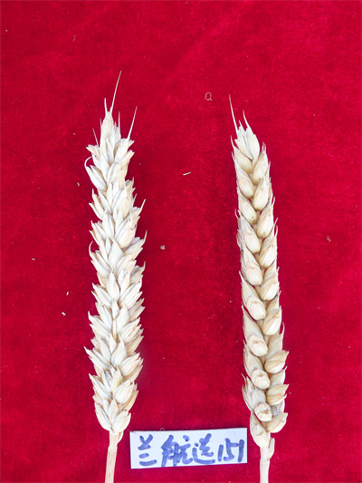 审定编号:甘审麦20220012。特征特性:冬性。生育期262天,比对照兰天19号早熟1天。幼苗匍匐,叶色深绿,分蘖力强。株高96厘米,株型半紧凑,抗倒性一般。旗叶上举,整齐度好,穗层整齐,熟相好。穗型近长方形,无芒、白壳、红粒,籽粒半角质,饱满度较好。亩穗数34.6万穗,穗粒数36.4粒,千粒重46.3克。抗病性鉴定,对条锈病免疫,成株期中抗白粉病。品质检测结果,籽粒容重770克/升,蛋白质含量14.55%,湿面筋含量34.2%,稳定时间2.6分钟,吸水率59.2%,最大拉伸阻力175E.U,拉伸面积55平方厘米。产量表现:2018~2020年参加甘肃省小麦品种区域试验,平均亩产430.8千克,比对照兰天19号增产7.61%。2020~2021年生产试验平均亩产402.4千克,比对照兰天19号增产5.2%。
