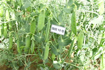 陇豌10号:甘肃省农业科学院作物研究所新育成豌豆品种。中早熟、矮秆、半无叶型豌豆品种。甘肃中部地区种植生育期83-90d,有限结荚习性,鼓粒快、成熟落黄好。2020-2021年参加国家食用豆产业技术体系春播豌豆新品种联合鉴定试验,平均产量3357kg/hm2,居参试品种的1位。耐豌豆根腐病,中抗白粉病和锈病,适宜在我国西北、东北豌豆春播区和西南、华中、华东、华南豌豆秋播区种植。特别适宜在甘肃省高寒阴湿区及中部干旱半干旱区有灌溉条件的地区种植。适宜单种或与玉米、向日葵、马铃薯、甜菜及幼林果树等作物套种。