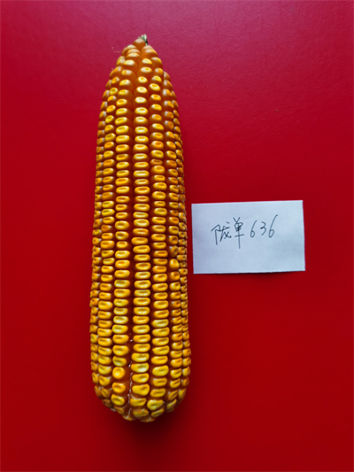 陇单636为籽粒机收玉米品种,生育期与先玉335相当。该品种幼苗叶鞘深紫色,第一叶尖端圆到匙形;株型半紧凑,株高310cm,穗位120cm;花丝绿色,花药紫色,护颖绿色,雄穗分枝数7-9个;果穗锥形,穗长22.0cm,穗粗5.0cm,穗行数16-18行,穗轴红色;籽粒半马齿型,粒色黄色。主要优点为幼苗早发性好;成株根系发达、健壮;结实性好,不秃尖;高产,稳产,适应性广;抗病性较好;抗旱,耐盐碱;籽粒商品品质优。该品种适宜在西北及东华北区推广种植。