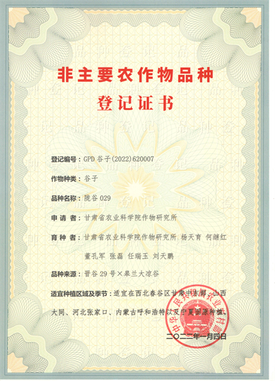 审定(认定、登记)编号:GPD谷子(2022)620007