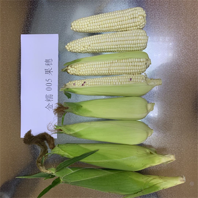 金糯005是甘肃张掖市农业科学院和张掖市华陇种业有限责任公司联合以自育系N51为母本,N11为父本杂交选育而成的鲜食糯玉米杂交种。该品种2022年4月通过了甘肃省农作物品种审定委员会审定(审定号:甘审玉20220116)。