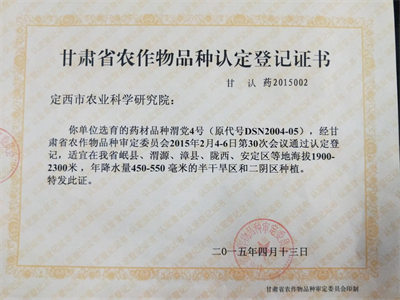渭党4号品种证书