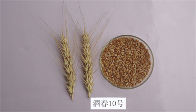 酒春10号是由酒泉市农业科学研究院选育的春小麦新品种。属中熟品种,生育期101天左右,幼苗直立,叶色深绿,株高90厘米左右,长芒,白穗,穗长方型,籽粒琥珀色,角质,千粒重44.25克左右,容重803.8克/升。穗粒数41.9粒,亩穗数39.17万左右。株型紧凑,旗叶上举。粗蛋白(干基)含量14.69%,湿面筋30.5%(以14%水分计),Zeleny沉淀值33.0毫升,吸水量59.1毫升/100克,面团形成时间7.3分,稳定时间6.3分,弱化度122F.U,粉质质量指数107毫米,评价值65。2016-2017年甘肃省西片水地组区域试验两年平均亩产526.56公斤,较对照宁春4号增产6.56%。2018年生产试验6点平均折合亩产545.77kg,较对照宁春4号增产4.29%。适宜在甘肃省河西水地品种类型区种植。