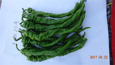 简介:天椒20号,早熟品种,生长势较强,粗长羊角形,辣味强。抗病毒病CMV、抗病毒病TMV、疫病、炭疽病、白粉病,较耐低温弱光。