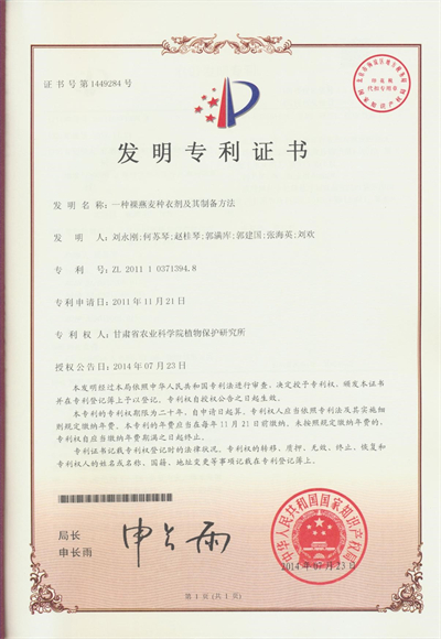 一种裸燕麦种衣剂及其制备方法--专利证书