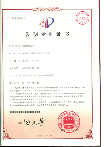 种子包衣是种子工程的重要组成部分,已成为防虫抗病,提高农作物产量的重要途径。该成果针对不同作物、蔬菜防治的靶标生物,通过药剂筛选、复配、药物缓释、种衣成膜等技术,经混合、分散、砂磨等工艺制成种子包衣剂,在作物及蔬菜生长期间,通过药物持续传导到达作物各个组织,从而起到治虫防病的作用,研发出的小麦、燕麦、玉米、马铃薯、蔬菜等悬浮种衣剂,对小麦早期条锈病、白粉病、全蚀病,玉米丝黑穗病、黑粉病、地下害虫,马铃薯甲虫、蚜虫,以及各类蔬菜根腐病等田间防效显著,而且可有效减少化学用药1-2次,能减轻劳动强度,具有绿色环保、省时省工、防病虫增产效果突出、可操作性强、应用范围广的优点,研发的产品在我省河西走廊,河南、吉林、辽宁、内蒙古等产区已大面积推广应用。