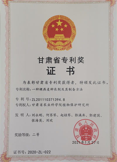 一种裸燕麦种衣剂及其制备方法--获奖证书