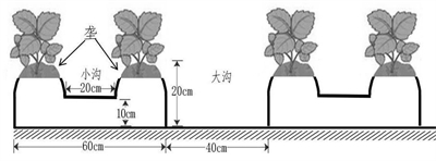 技术特点:1、地面起垄后(垄宽60 cm、高20 cm,沟宽40 cm),垄上营建小沟(垄面正中间开微沟,宽20cm,深10cm),提高垄上土壤水分含量;2、用地膜全覆盖,增加了集雨面,使垄面上的降水向垄上微沟和大沟内聚集叠加,较普通的全膜双垄沟播显著提高降水利用效率;3、可提高干旱季节的垄上土壤含水量,降低雨季的垄上含水量,利于马铃薯块茎生长和降低病害风险;4、马铃薯种植在垄侧,以满足块茎生长的土壤要求,进而显著提高马铃薯产量。