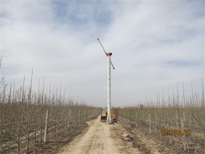 3、明确了防霜风机对辐射霜冻防御效果好,可使园内温度提高0.9℃~2.8℃,有效防御半径为80 m;提出“覆草+滴灌”梨树水分高效利用技术模式;探明了梨树腐烂病、梨小食心虫2种梨树重要病虫害在我省梨主产区的发生发生规律,建立了梨树病虫害绿色防控技术体系,年农药使用减少2~3次,节省农药30%以上,优质果率提高16.2%。