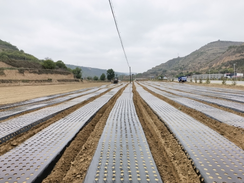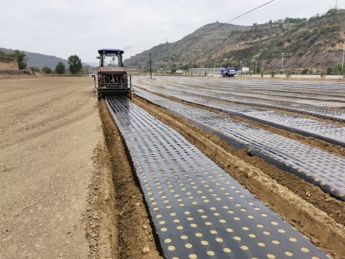 中药材大部分采用“育苗-移栽”模式,在育苗过程中春季干旱、杂草疯长是中药材育苗环节最突出的问题,导致成苗率差、除草用工量大;劳务成本占总种植成本的50-60%;中药材研究所针对以上问题,提出了“中药材覆膜穴孔育苗技术”。