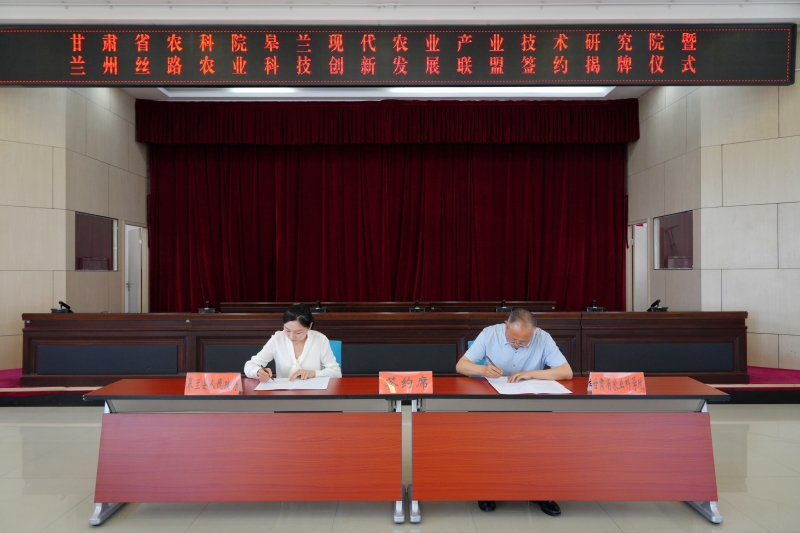 会上,院党委委员、副院长吕和平与皋兰县副县长雷子现场签订了“皋兰县人民政府—甘肃省农业科学院现代农业产业技术研究合作协议”和“兰州丝路农业科技创新发展联盟合作共建框架协议”,并为“兰州丝路农业科技创新发展联盟”揭牌。