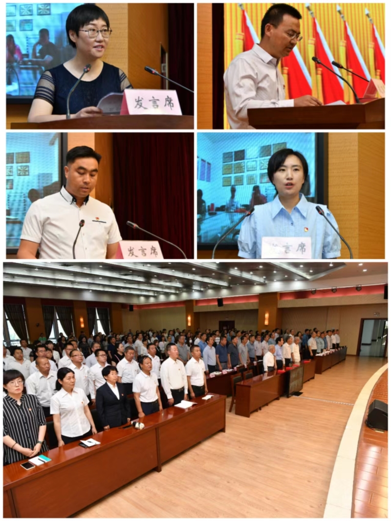受表彰的先进基层党组织代表张茹,优秀共产党员代表刘天鹏、段誉,优秀党务工作者代表牛茹萱先后作大会发言。