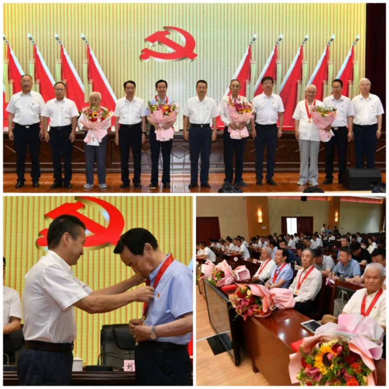 峥嵘五十载,岁月映初心。在庄重简朴的颁发仪式上,刘国汉为5位老党员代表颁发“光荣在党50年”纪念章,致以亲切问候和崇高敬意。