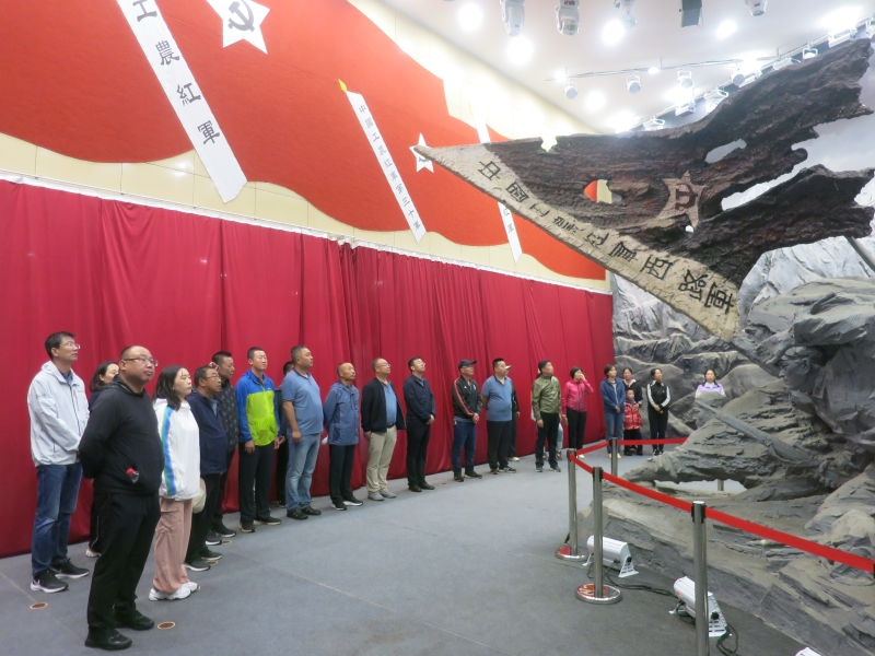 重温入党誓词,永葆入党初心。在古浪战役纪念馆初心广场,面对鲜红的中国共产党党旗,全体党员举起右手重温入党誓词,坚定有力的宣誓声透露着党员干部为党和人民事业奋斗终身的决心和毅力。