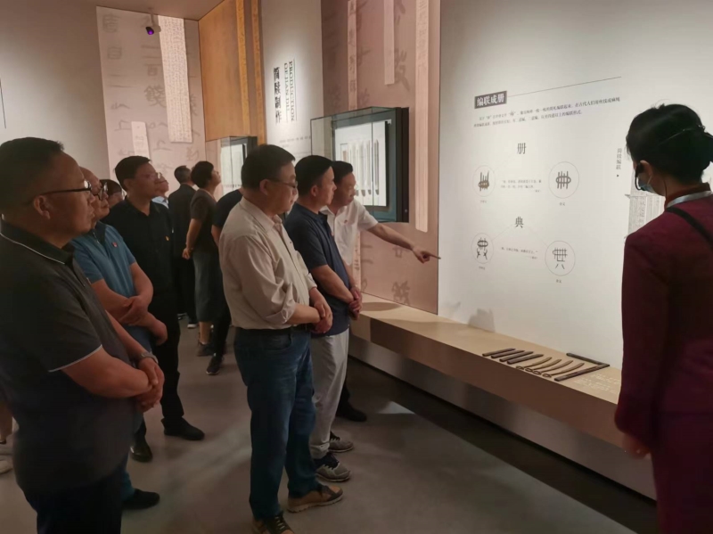 党员们集体重温入党誓词。随后,参观了甘肃简牍博物馆中的“简牍时代”“简述丝路”“边塞人家”“书于简帛”等四个主题陈列展厅。通过简牍的考古发现、壮阔的丝路故事、汉简中蕴含的书法艺术以及20世纪初中国古文献的“四大发现”等介绍中,学习了甘肃悠久厚重的文化遗产,了解感受到了古老简牍里蕴含的中国智慧及中华文脉绵延数千载的赓续传承。