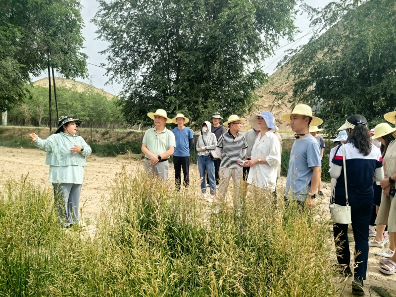 在畜草所牧草育种制种试验基地,大家实地观摩了苜蓿、无芒雀麦等饲草育种栽培的田间试验,并就育种材料的收集、筛选、田间试验的合理布置、数据的精准测定进行了现场交流与指导。