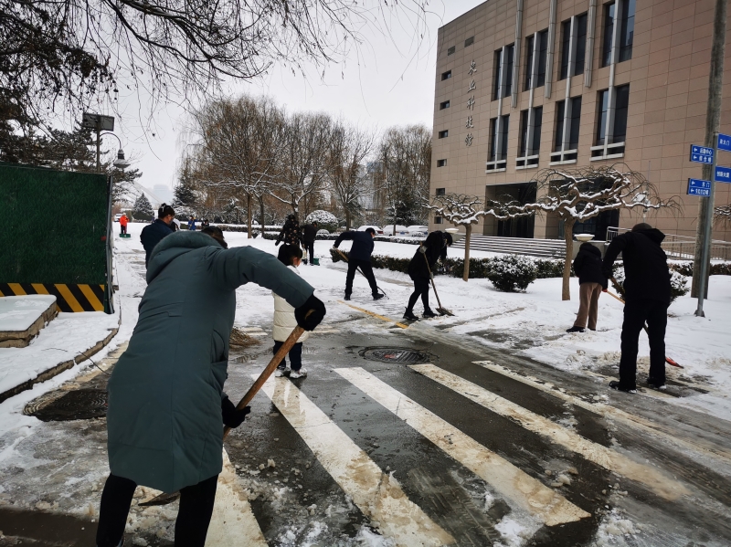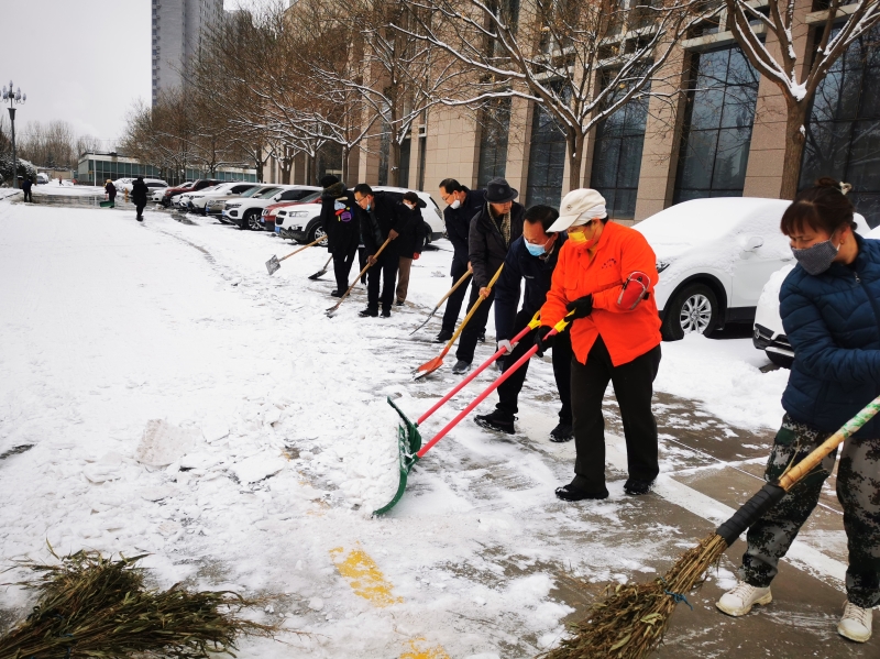清雪现场,全体党员干部职工不畏严寒,挥舞着铁锹、雪铲等劳动工具清扫路面积雪,大家齐心协力,默契配合。尽管手和脸都被冻得通红,但始终保持着一颗热情的心。经过一下午的忙碌,院内主要出入口、道路以及各楼宇门前等地的积雪已基本清除完毕,居民出行恢复了顺畅,方便了广大群众的出行。