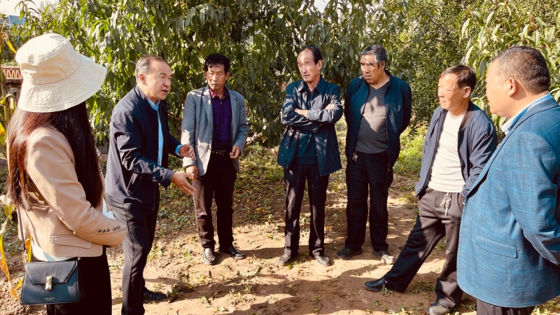 在曹家湾村的桃园里,我院林果所陈建军研究员结合自身学科优势和多年服务地方果业发展经验,从农机农艺结合、轻简化桃园创建、桃园水肥管理及病害防控等方面进行了技术指导和科普讲解。