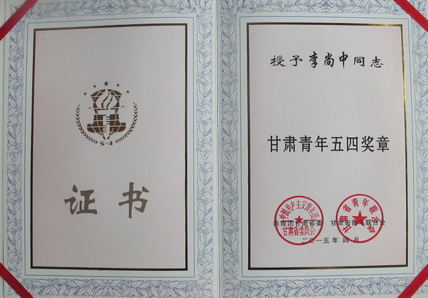 我院李尚中同志荣获“甘肃青年五四奖章”