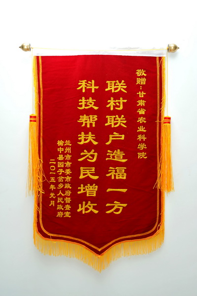2月4日,兰州市委市政府督查室主任高生军会同“双联”点——榆中县园子岔乡党委书记罗有梁一行,代表兰州市委市政府督查室和榆中县园子岔乡政府,再次来到我院,把“联村联户造福一方,科技帮扶为民增收”的锦旗送到我院党委书记魏胜文的手中,我院科技帮扶工作再次得到“双联”单位及帮扶百姓的充分肯定。