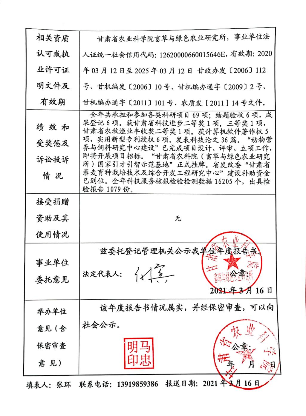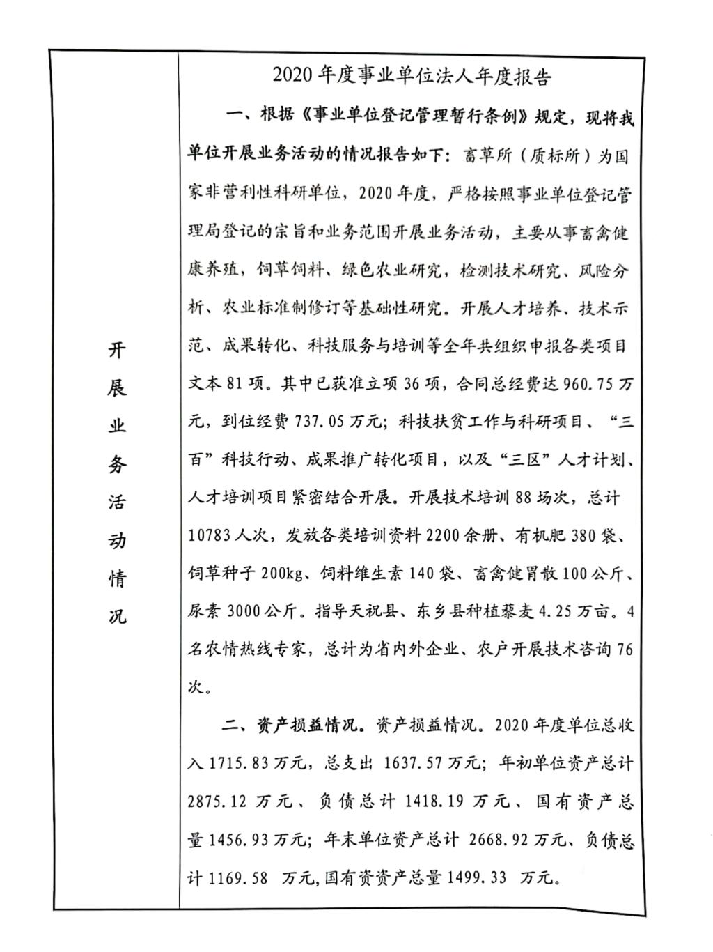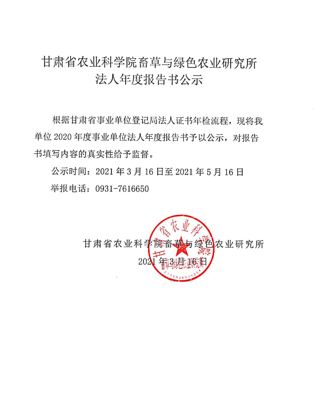 根据甘肃省事业单位登记局法人证书年检流程,现将我单位2020年度事业单位法人年度报告书予以公示,对报告书填写内容的真实性给予监督。