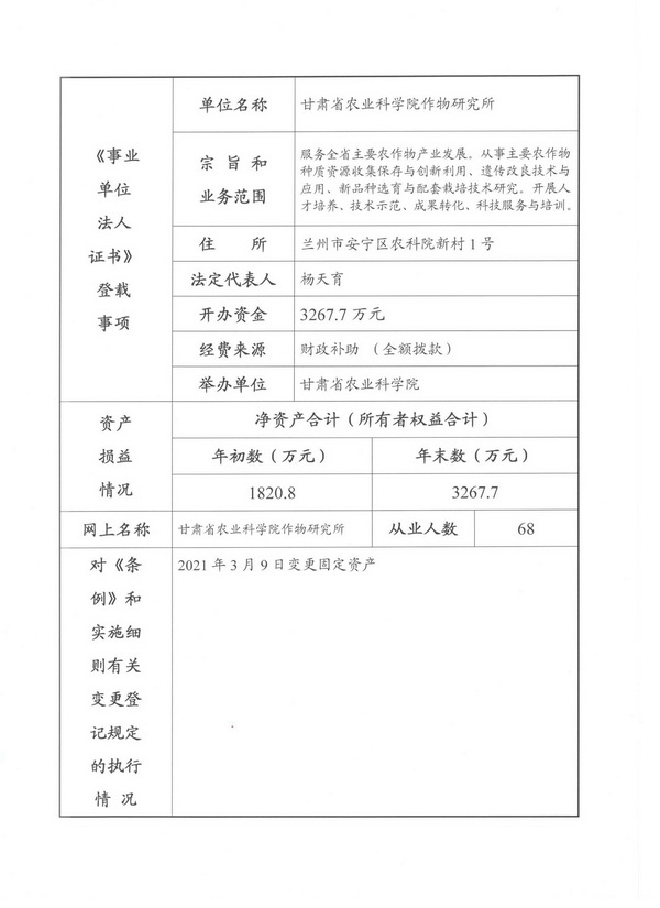根据甘肃省事业单位登记局法人证书年检流程,现将我单位2020年度事业单位法人年度报告书予以公示,对报告书填写内容的真实性给予监督。