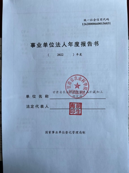 根据甘肃省事业单位登记局法人证书年检流程,我单位法人证书的年检报告书通过网上已提交甘肃省事业单位登记局审核通过,按流程需在院局域网上进行公示,现将我单位2022年度事业单位法人年度报告书予以公示,对报告书填写内容的真实性给予监督。