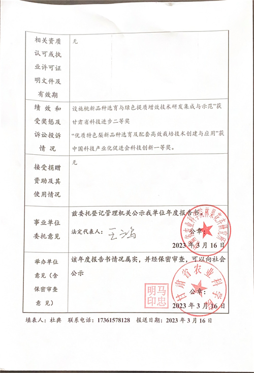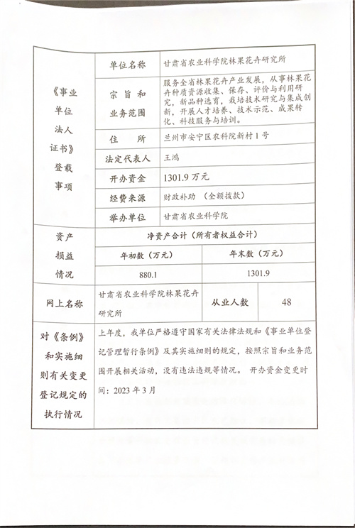 根据甘肃省事业单位登记局法人证书年检流程,现将我单位2022年度事业单位法人年度报告书在院局域网予以公示,对报告书填写内容的真实性给予监督。