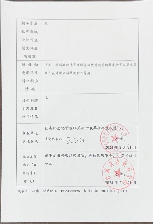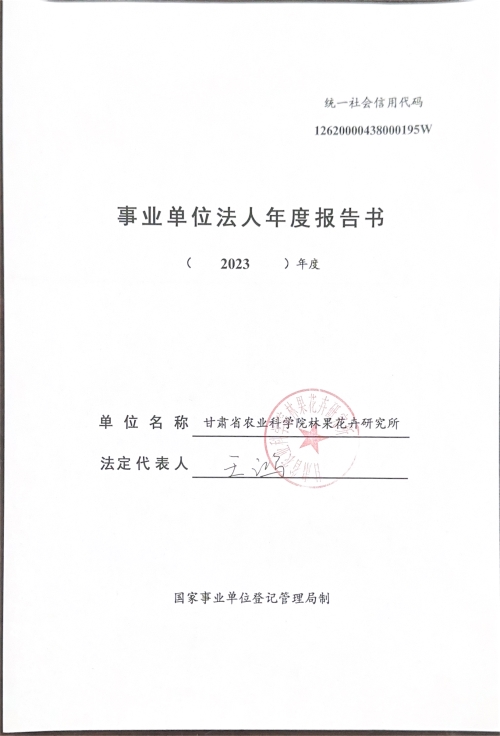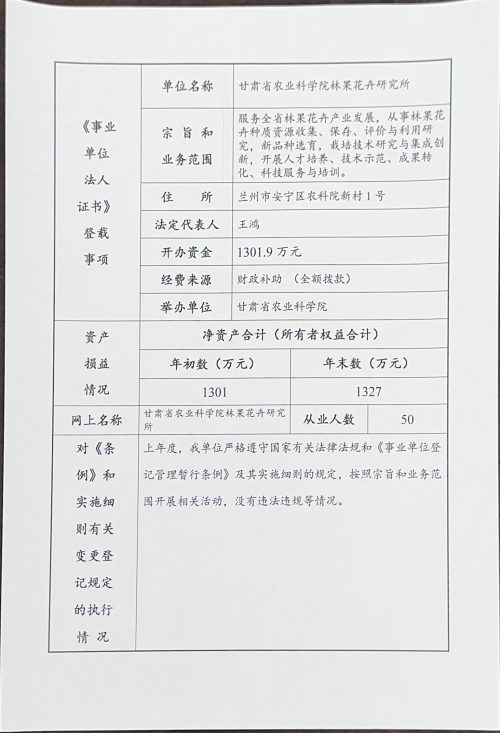 根据甘肃省事业单位登记局法人证书年检流程,现将我单位2023年度事业单位法人年度报告书在院局域网予以公示,对报告书填写内容的真实性给予监督。