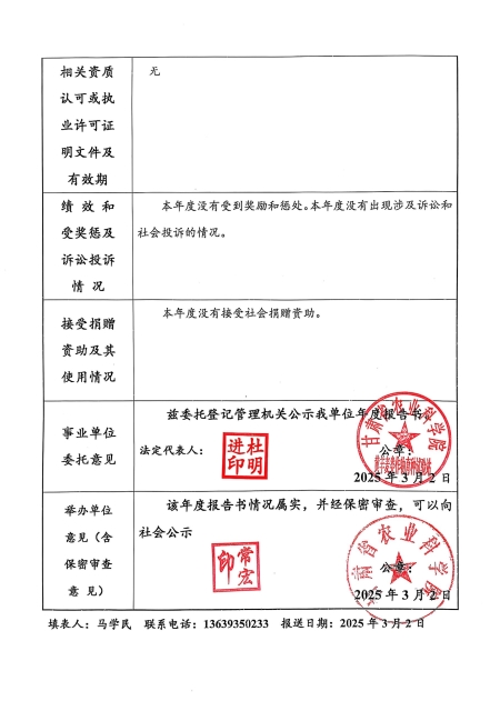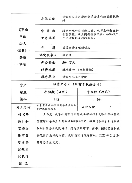 根据甘肃省事业单位登记管理局法人年检流程,现将我单位2024年度事业单位法人年度报告书予以公示,对报告书填写内容的真实性给予监督。