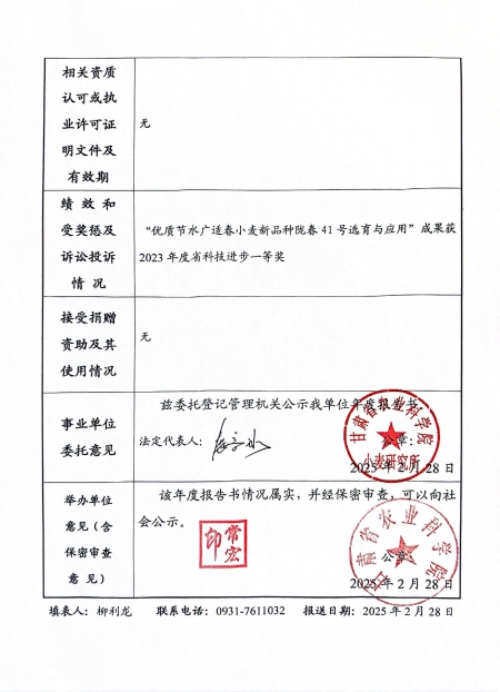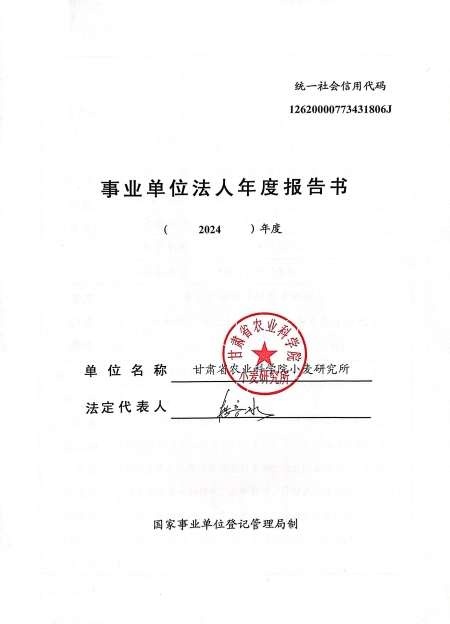 根据甘肃省事业单位登记局法人证书年检流程,现将我单位2024年度事业单位法人年度报告书在院局域网予以公示,对报告书填写内容的真实性给予监督。