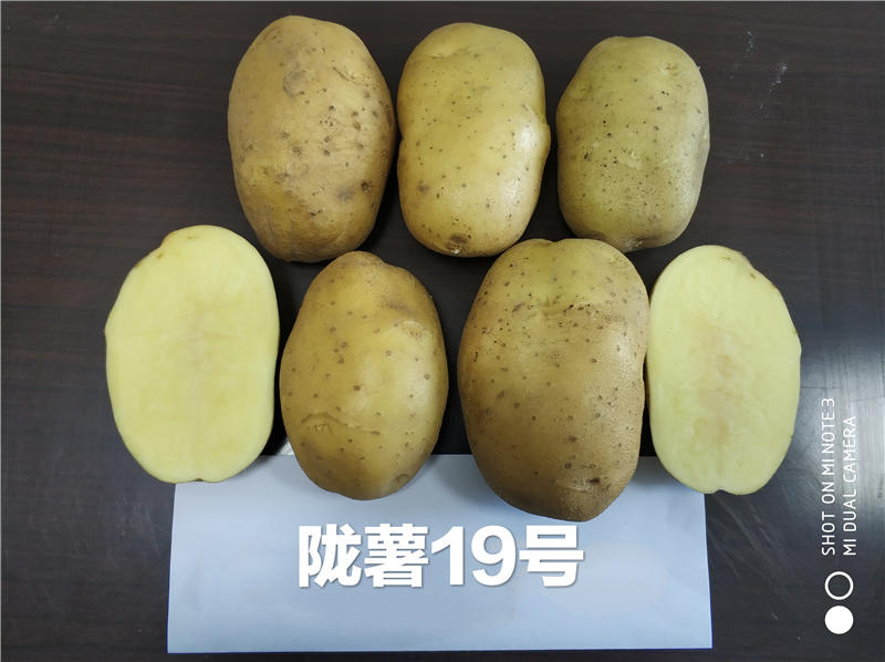 陇薯19号(系谱号L13120-1),中熟(出苗至成熟85天左右),2019年育成,正在申请国家非主要农作物品种登记。薯块长椭圆形,薯皮光滑,淡黄皮淡黄肉,芽眼浅,薯形评价好,食味优。薯块休眠期长,耐贮藏、运输。薯块含干物质17.8%,淀粉14.84%,粗蛋白2.54%,维生素C 14.57 mg/100g,还原糖0.32%,钾416.55 mg/kg,锌4.15 mg/kg。适宜我省适宜沿黄灌区、白龙江流域及近郊川水地区种植。