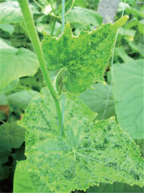 图1 黄瓜绿斑驳花叶病毒病发病症状