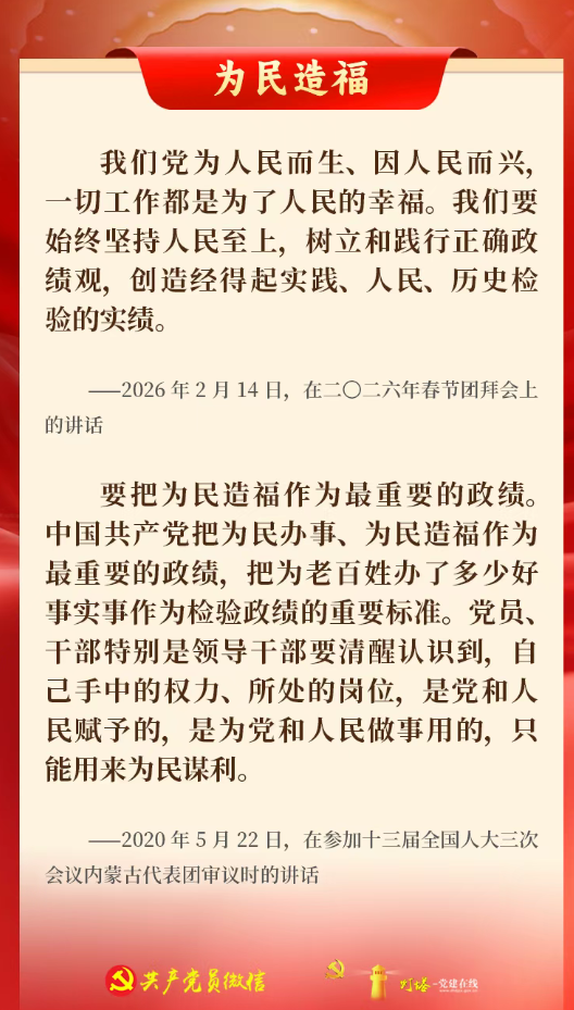 中共中央办公厅印发《关于在全党开展树立和践行正确政绩观学习教育的通知》,明确把“立党为公、为民造福、科学决策、真抓实干”这16个字,作为学习教育的总要求。“十五五”开局之年,一起学习总书记相关重要论述,将16字总要求内化于心、外化于行,树立和践行正确政绩观,投身强国建设、民族复兴的关键一程。